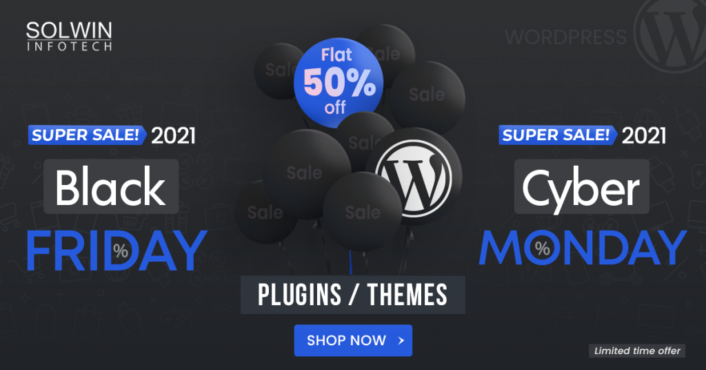 Solwin Infotech предлагает фиксированную скидку 50% на все плагины и темы WordPress. Это предложение включает в себя наши самые популярные плагины WordPress, такие как: