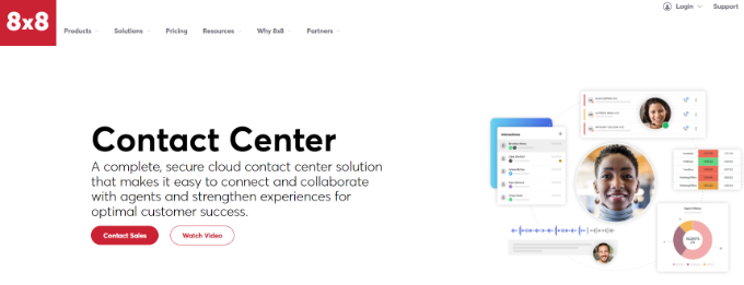 8×8 เป็นแพลตฟอร์มการสื่อสารบนคลาวด์ที่นำเสนอโซลูชันคอลเซ็นเตอร์ที่ปลอดภัย บริการนี้เต็มไปด้วยคุณสมบัติและให้เวลาทำงาน 99.99% ใน UCaaS และ CCaaS
