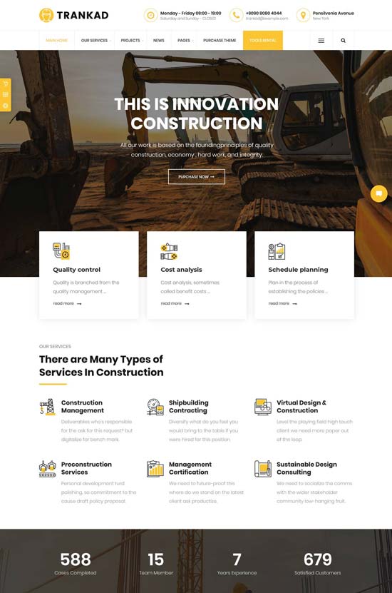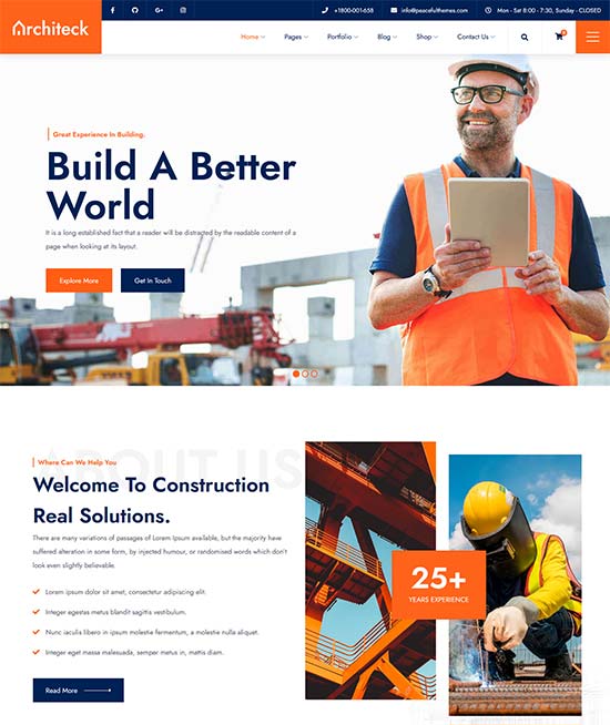 อาคารเป็นอาคารก่อสร้างธีม WordPress ที่ทันสมัย มาพร้อมกับการสาธิตเอนกประสงค์คุณภาพสูง เทมเพลตหน้า และหน้าภายในจำนวนมาก เช่น หน้าบริการ หน้าโครงการ หน้าทีม หน้ารับรอง เค้าโครงบล็อกหลายแบบ และอื่นๆ