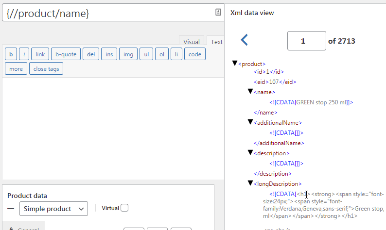 ภายในแท็กมีรายละเอียดสินค้า วางแท็กแทนที่คำอธิบายผลิตภัณฑ์ WooCommerce ตรวจสอบให้แน่ใจว่าคุณป้อนคำอธิบายในโหมดข้อความ เนื่องจากคำอธิบายอยู่ในรูปแบบ HTML