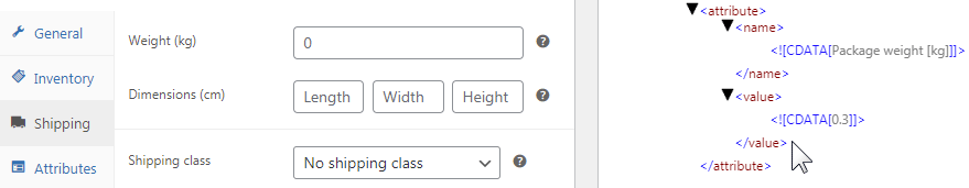 ฟีดผลิตภัณฑ์ยังรวมมูลค่าน้ำหนักของผลิตภัณฑ์ที่บรรจุไว้ด้วย ใช้ช่องน้ำหนักบรรจุภัณฑ์สำหรับน้ำหนักผลิตภัณฑ์:
