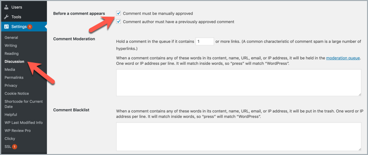 คุณยังสามารถใช้คุณลักษณะ Blacklist ของความคิดเห็น ซึ่งคุณสามารถแสดงความคิดเห็นที่มีคำหรือ URL บางคำหรือที่มาจาก IP บางรายการไปยังถังขยะได้โดยตรง ซึ่งช่วยให้คุณประหยัดเวลา