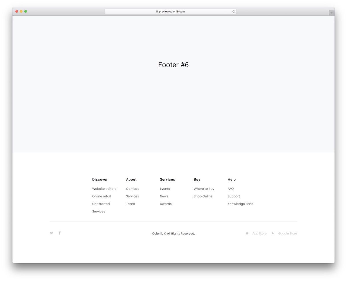 Snippet, ek sosyal medya simgeleri ve gizlilik politikası, şartlar ve daha fazlası için bağlantılar içeren dört sütuna bölünmüştür. Canlı demo önizlemesini ziyaret ederek ve oradan giderek ön test yapabilirsiniz.