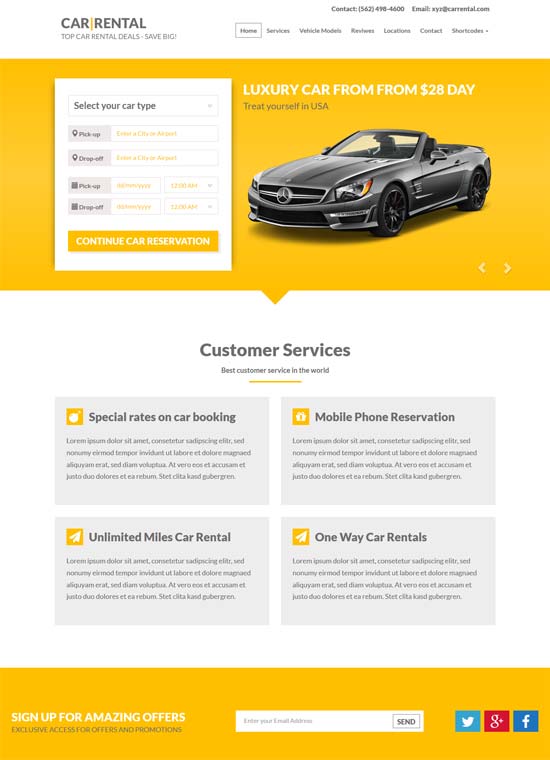 Bu premium araç kiralama WordPress temalarını seçmek, genellikle taksi aktivitesi ile ilişkilendirilir, havayı ayarlayabilecek ve ilk bakışta izleyicilerin kalbini kazanabileceksiniz. Hızlı arabaları, akılda kalıcı sloganı, akıllıca organize edilmiş hizmet listesi ve ulaşılması kolay rezervasyon formu ile harika arka plan resimleri, iş fikirlerinizi daha iyi iletmenize ve insanların sadece birkaç tıklamayla arabayı rezerve etmesine olanak tanır. Sitenizi bu tamamen duyarlı temalar üzerinde oluşturarak, kullanıcıları işletmenizin akıllı telefondaki güvenilirliğine inandıracak ve hizmetlerinize 247 erişim hakkı vereceksiniz.