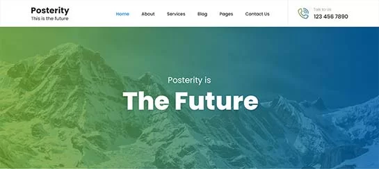Posterity, düzenli tipografi ile güzel ve temiz tasarım sunan yeni oluşturulmuş ücretsiz temiz WordPress temasıdır . Şirket geçmişiniz hakkında daha fazla şey paylaşmanız için daha yararlı olacak doğru bölüm kombinasyonuna sahip olduğunu fark edeceksiniz.