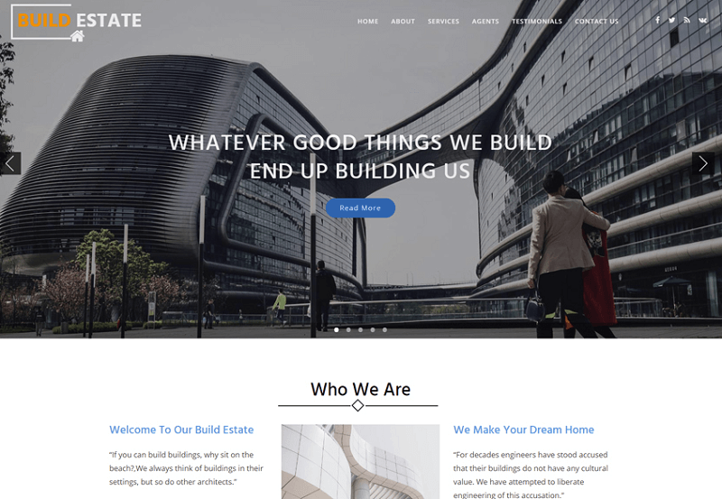 Build Estate emlak temalı çok amaçlı bir şablondur, bu modern ve zarif bir şekilde tasarlanmış şablonu kullanarak işinizi çevrimiçi olarak genişletmek ve işletme kârınızı artırmak için tüm emlak web siteleriniz için en iyi seçimdir. Bu akıllıca tasarlanmış şablon, aracı kurumlar, apartman yöneticileri, konut ve ticari geliştiriciler, tatil kiralama, apartman kiralama, acente alanları, villa, bağımsız acenteler, emlakçılar, dizin siteleri, bağımsız acenteler, kurumsal ve çok daha fazlası gibi tüm web siteleriniz için mükemmel bir seçimdir. . Yaratıcı bir şekilde tasarlanmış bu şablon, başlık kaydırıcısı, pürüzsüz kaydırmalı gezinme, şık vurgulu efektler, zarif bir şekilde hazırlanmış görüntü sekmeleri, aşamalı sayılar, atlıkarınca kaydırıcıları, her ayrıntıda şık ve zarif tasarım stili gibi harika özelliklere sahiptir.