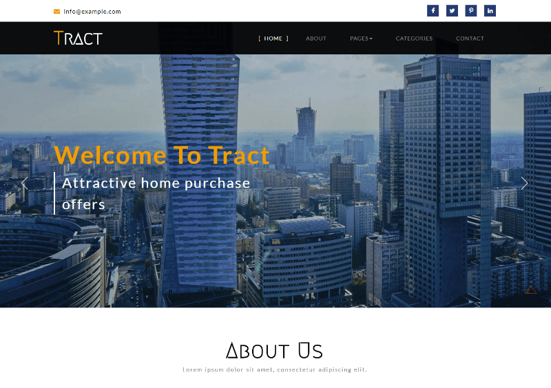 Tract House, emlak temalı çok amaçlı, işinizi çevrimiçi olarak dünya çapında genişletmek ve bu modern ve zarif tasarımlı şablonu kullanarak çevrimiçi varlığınızı artırmak için tüm emlak web siteleriniz için akıllı bir seçimdir. Bu akıllıca tasarlanmış şablon aynı zamanda aracı kurumlar, apartman yöneticileri, konut ve ticari geliştiriciler, tatil kiralama, emlakçı, çoklu mülkler, villa, kurumsal, emlak acenteleri ve çok daha fazlası gibi tüm web siteleriniz için mükemmel bir seçimdir. En iyi ücretsiz emlak HTML web sitesi şablonlarından biri. Bu zarif tasarımlı şablon, tüm ekran boyutlarında görüntülenen, tüm cihazlarla uyumlu, %100 duyarlı bir çapraz tarayıcı şablonu. Tamamen Bootstrap çerçevesinde, HTML5, CSS3 ve JQuery'de oluşturulmuştur.