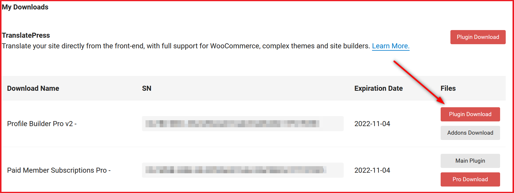 Profile Builder Pro'yu satın aldığınızda, Cozmoslabs'ta hesabınıza giriş yapabilir ve eklenti dosyalarını indirebilirsiniz.