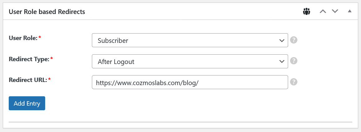 Açılır menüden Çıkış Yaptıktan Sonra seçeneğini seçmeniz, yönlendirme URL'sini girmeniz ve Giriş Ekle düğmesini tıklamanız yeterlidir.