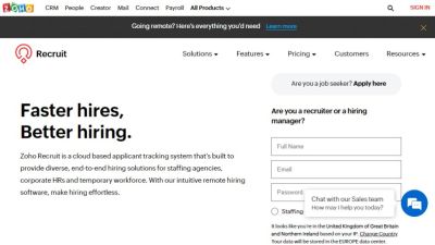 如果 Zoho 还没有垄断足够的市场,它还有一个招聘解决方案,可以与 CRM 和 Motivator 等其他平台一起工作。 Zoho Recruit 具有三个面孔,旨在支持人事代理机构、企业 HR 和那些提供临时劳动力的机构。