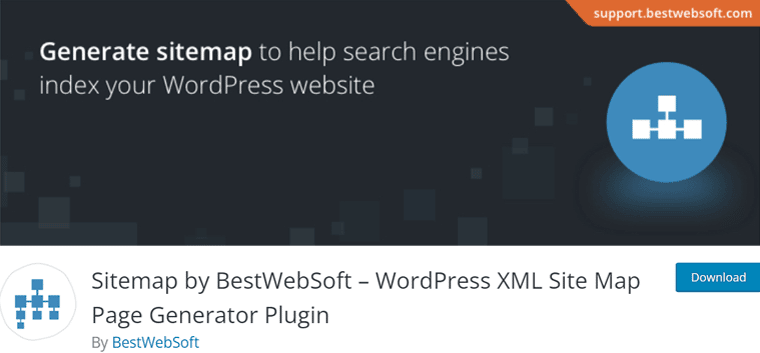 BestWebSoft 的站点地图是具有强大 XML 站点地图生成器的顶级 WordPress 插件之一。 它会自动生成您的 WordPress 网站的 XML 站点地图,以帮助网络爬虫了解您网站的结构。