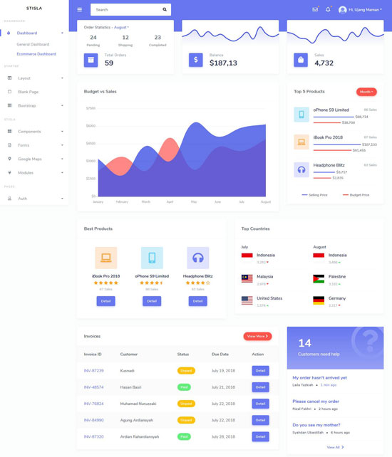 Stisla 是一个免费的引导管理模板,将帮助您加快项目速度,设计您自己的仪表板用户界面,用户会喜欢它。 与 30 多个第三方库和许多组件集成,您可以轻松创建仪表板布局。