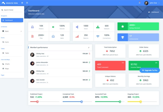 此模板提供的各种有用的仪表板元素和其他基本功能将使创建和自定义网站的过程更加容易。 Majestic 管理主题的简洁、编写良好的代码即使对于初学者来说也很容易理解。