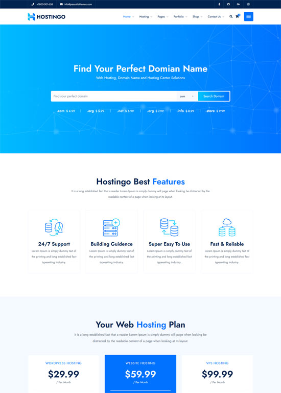 Hostingo 是一个功能强大且易于使用的 WordPress 主题。 Hostingo 是一个高度可定制且对移动设备友好的构建,具有支持 WHMCS 的最新 Bootstrap。 有超过 100 个内置的 ELements 元素可以通过拖放功能使用。 使用 Hosting 的价格表小部件,您可以创建无限数量的价格表以及更多可以玩的东西。 Hostingo 是各种网络托管服务的理想解决方案,例如网络托管、经销商托管、云托管、域、电子邮件托管、WordPress 托管。