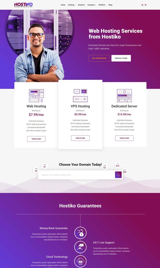 VirtuSky 是一个技术、虚拟主机和 WHMCS WordPress 主题,专为各种技术、域和托管业务而设计。 WHMCS 集成并与 WHMCS 桥完全兼容。 还包括基于 WHMCS v7.3 的 WHMCS 模板。 VirtuSky 是技术和软件企业以及基于 Visual Composer 的网络托管公司的主题。 该主题具有托管服务公司所需的所有功能,包括 WHMCS 的域搜索和注册功能。 花哨的定价表可让您显示不同服务器配置和托管包的托管价格。 如果您需要为托管公司、技术博客或软件评论博客创建网站,Hosting Business Technology WP Theme 是一个不错的选择。