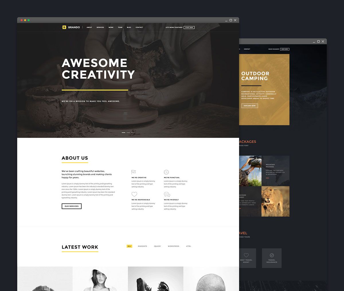 Webify 不僅有大量的主頁設計,而且還帶有現成的內部佈局、頁眉和頁腳。