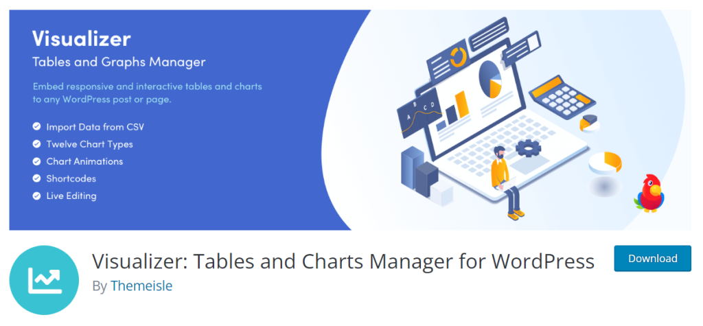 Visualizer 是一款多功能表格插件,擁有超過 40,000 個活躍安裝,可讓您創建各種表格和圖表。