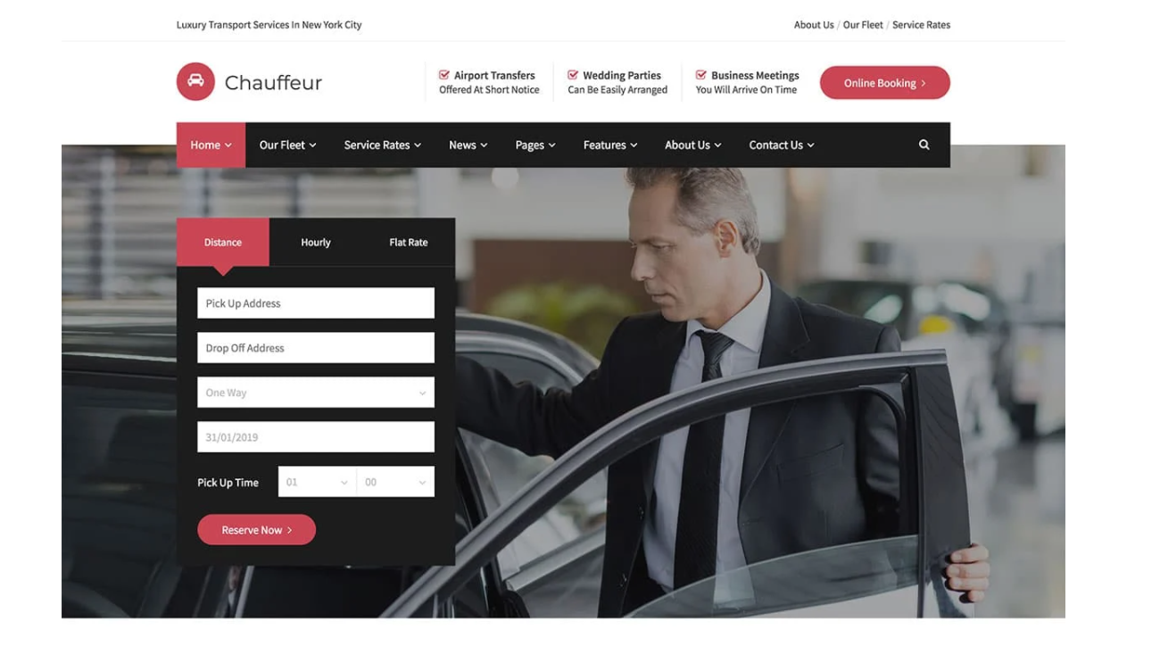 主題有新聞部分和推薦部分,可以使您的網站更具互動性和可信度。 Chauffer 包括車隊部分等頁面的多種變體。