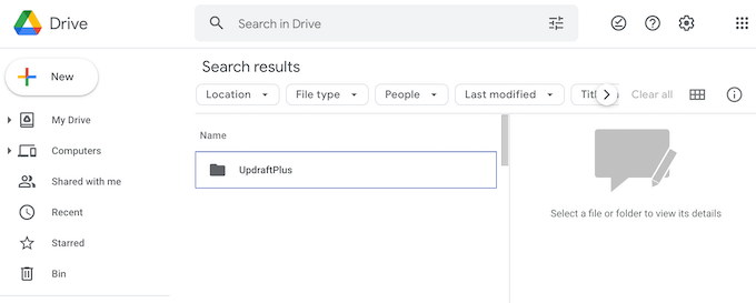 如果您使用的是免費版的 UpdraftPlus,那麼您應該在您的 Google 帳戶中找到一個新的“UpdraftPlus”文件夾。