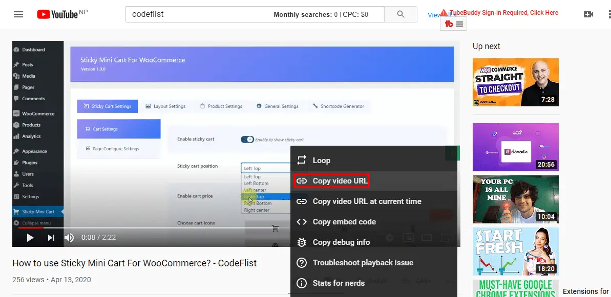 您也可以右鍵單擊視頻並複制視頻 URL,如下所示: