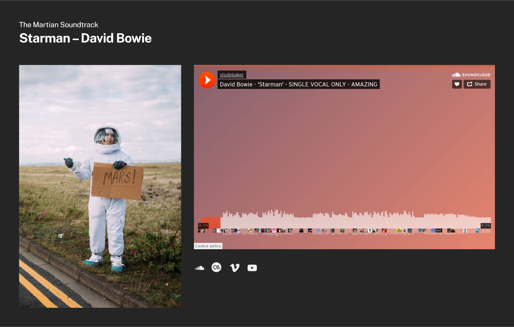 但是,我確實找到了可以運行並自己製作的想法。 我從《火星救援》原聲帶中的一個簡單音頻文件開始——我前一天晚上重溫了這部電影,當時正處於 David Bowie 的踢腿上。