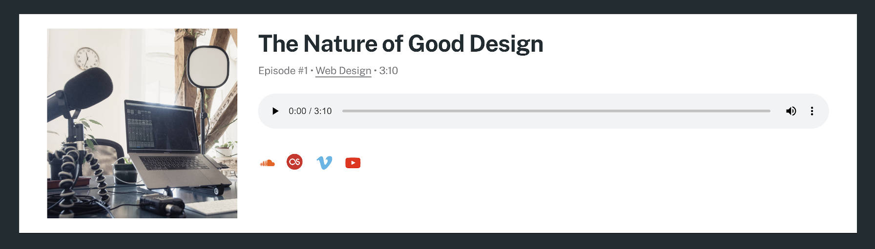 基於原始模式,我構建了一個使用 SoundCloud embed 而不是 Audio 塊的模式。 我還創建了另一個更適合播客的改動。