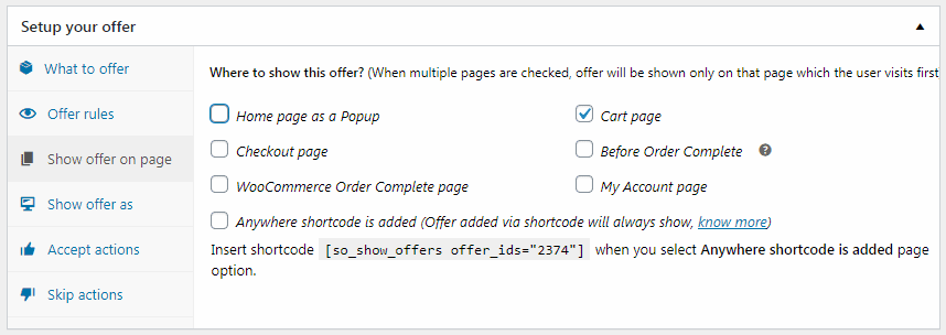 Show offer on page然後選擇您要顯示報價的頁面。 - 您還可以決定如何顯示您的報價 - 彈出窗口或在“將