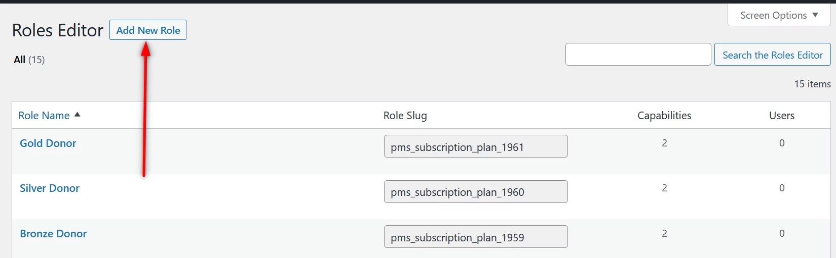 在創建用戶角色時,我們實際上有一個關於在 WordPress 和 WooCommerce 中添加新用戶角色的詳細指南。 您可以參考本指南來創建新的編輯者或作者用戶角色。 該過程很簡單,因為您只需單擊“角色編輯器”頁面頂部的“添加新角色”按鈕,然後執行與我們上面解釋的幾乎相同的操作。